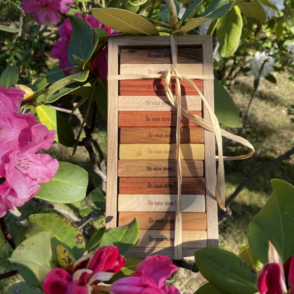 80€ le coffret de 12 porte-couteaux gravés d’une même essence – Livraison possible