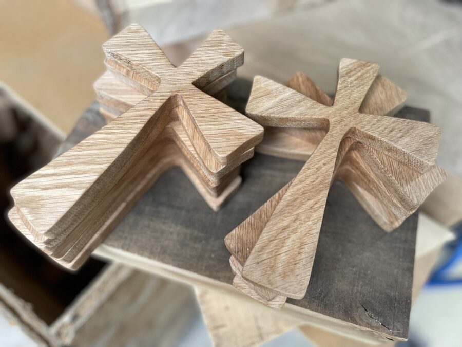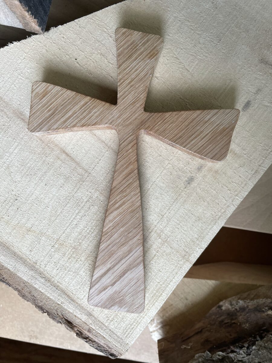 Jolie croix en chêne, 25 cm avec gravure personnalisable au dos !