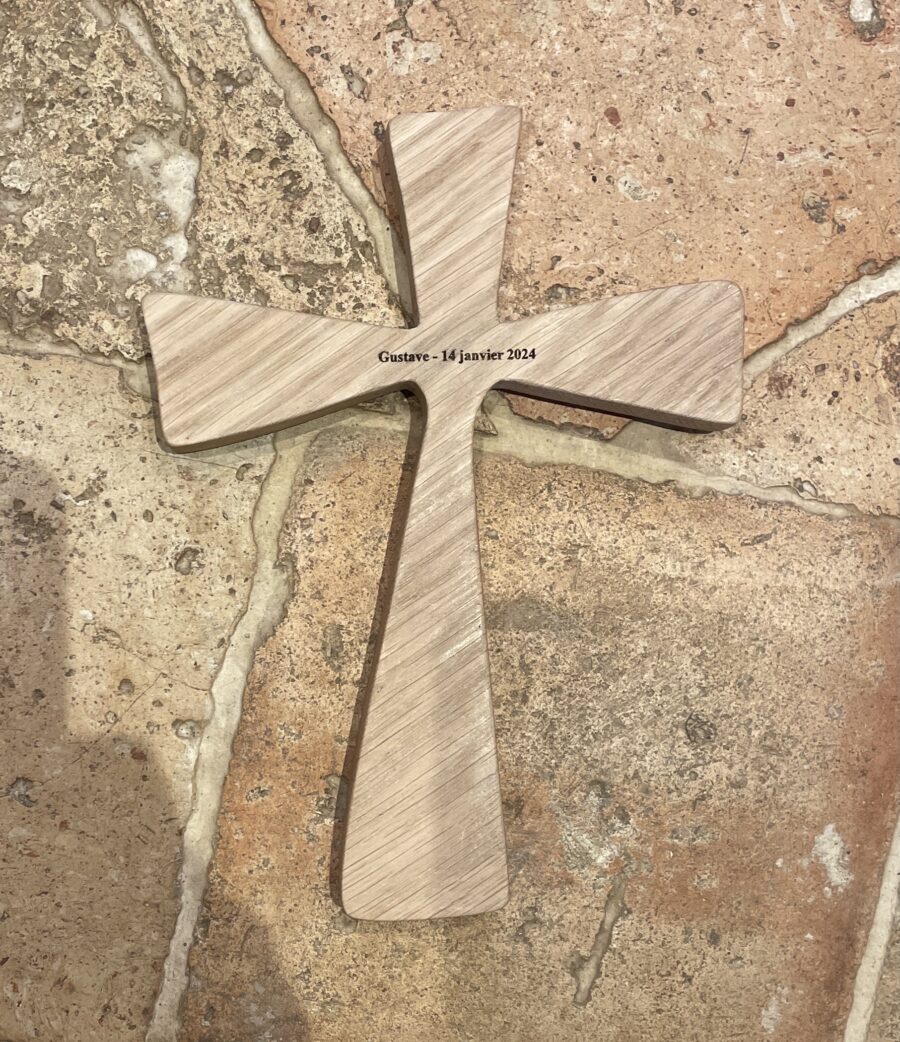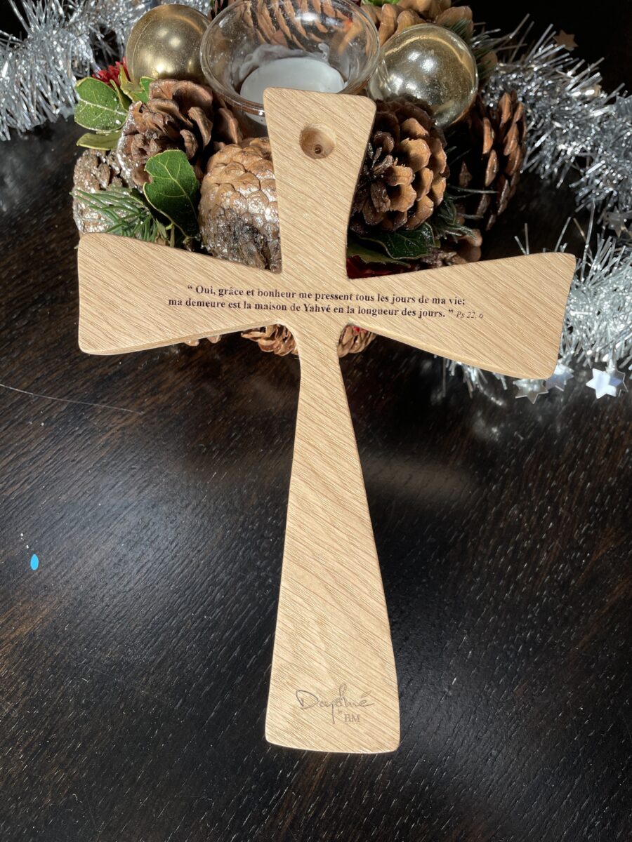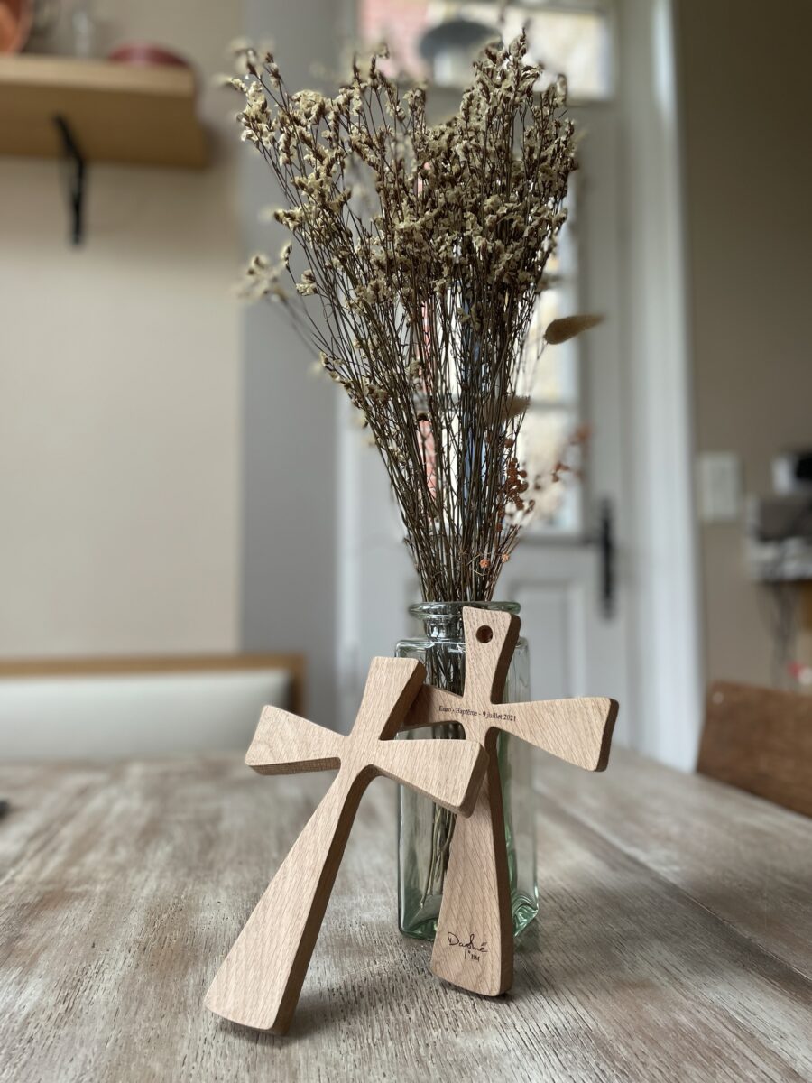 Jolie croix en chêne, 25 cm avec gravure personnalisable au recto ou au verso !
