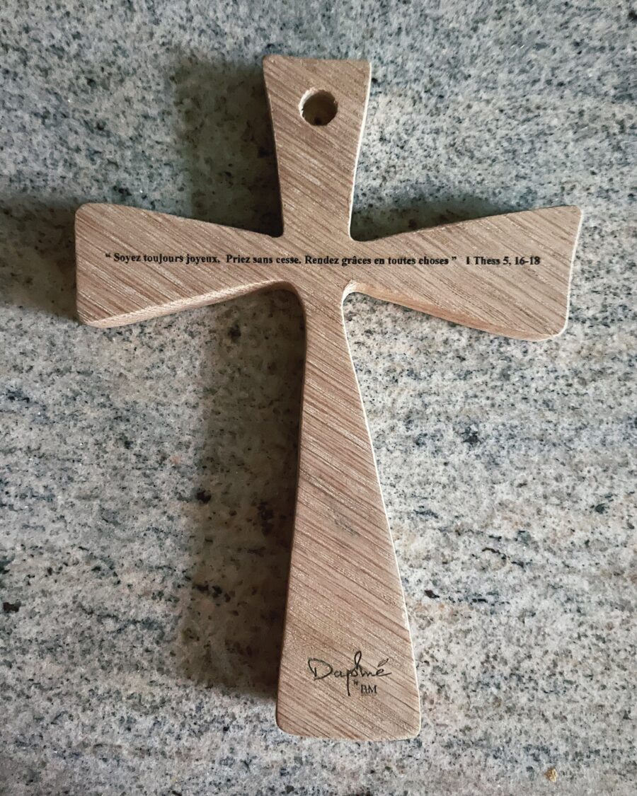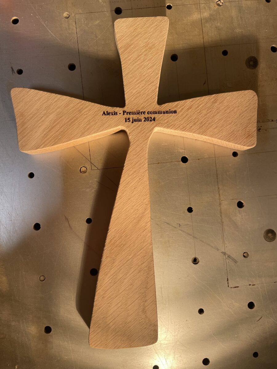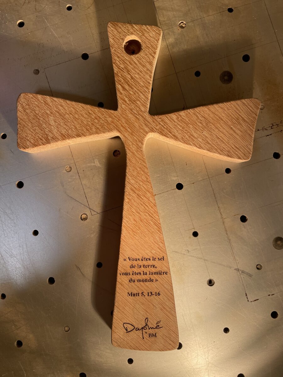 Jolie croix en chêne, 25 cm avec gravure personnalisable au recto ou au verso !